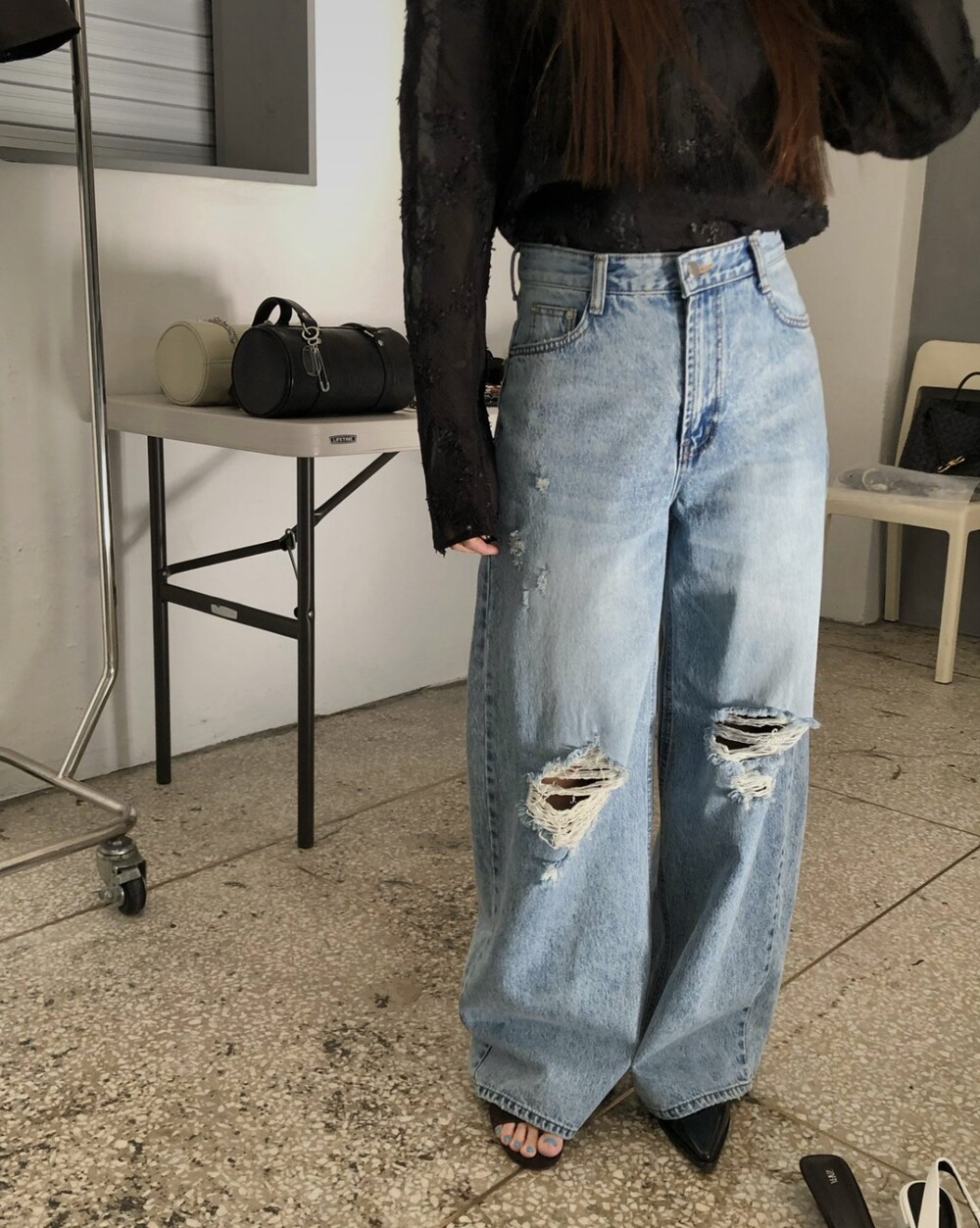 허리 : 36 힙 53 밑위 33 허벅지 32 총장 105